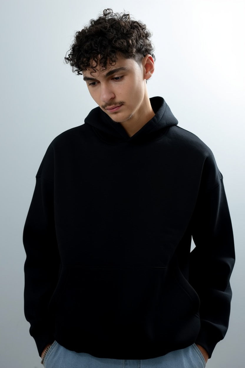 A black hoodie featuring a porsche design on the back. Soft, heavy fabric with an oversized fit. Clean front, artistic back.