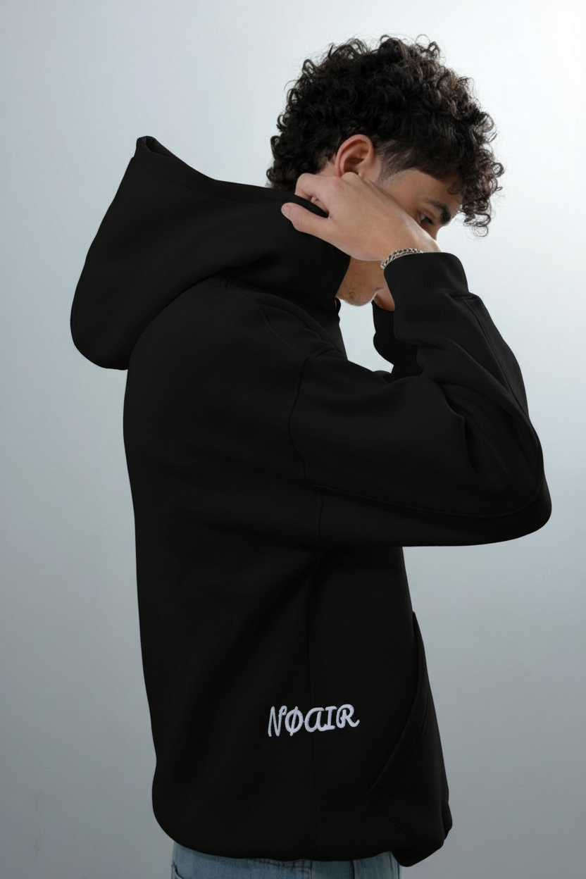 A minimal black hoodie with an oversized fit and thick fabric. Soft on the inside and structured on the outside. Simple, clean, and versatile.